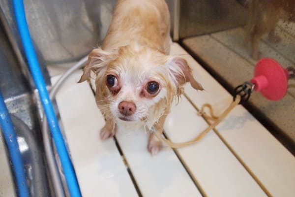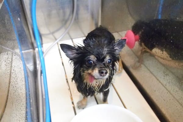 しばらくニオイを嗅いでいて落ち着いてからシャンプーしようね。