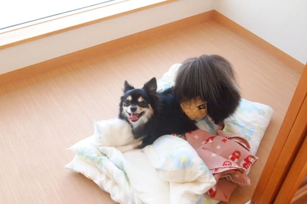 お迎えまでの時間、少し伏せる場面もありましたが、あとはずっとこんな感じだったので、間違いなくお家ではぐっすりだろうな。