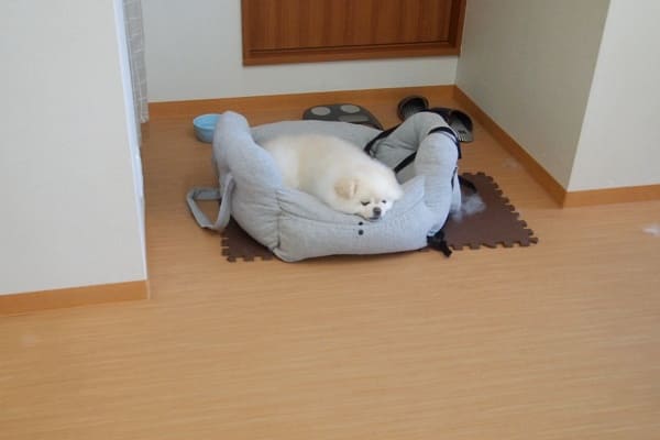 モコちゃんが入っていない時だけバッグの中で寝るフウちゃん。