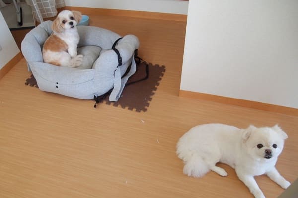 このご持参いただいているバッグ、2頭とも本当に好きみたいです。