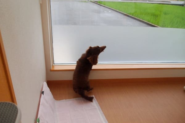 チョコちゃんはなんでまた置いていかれたのかと、窓の所でクンクン鳴いてました。