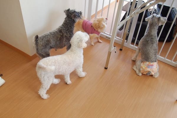 大きなわんちゃん達に圧倒されているステラちゃん。