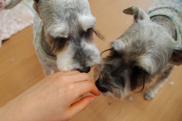 シュナウザー2頭は、嬉しそうに寄ってきてくれます。