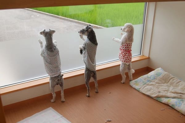 アロハちゃんが何もないし誰もいないのに興奮してしまい、それにつられて他2頭もそわそわ。