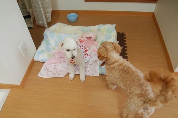 福ちゃんが寒くない程度に体が乾いた時点で、チワワ達がご来店。
