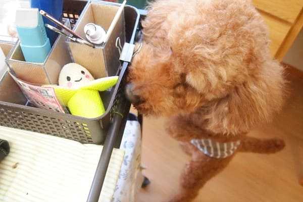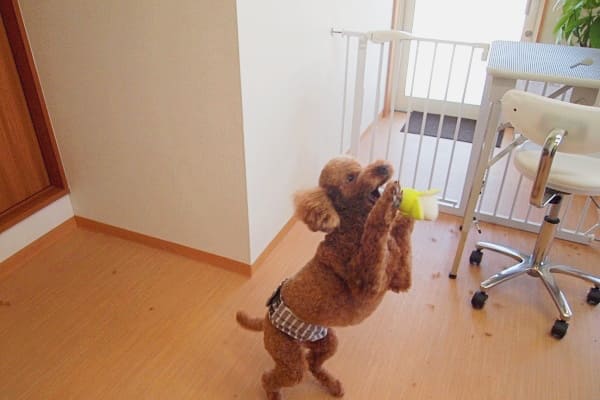 ココアちゃんや、そのおもちゃはカットが終わってからね。