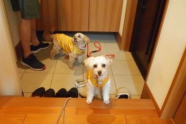 濡れた服を着せられ、玄関に下されてもなお、私のことを見つめてそわそわと。