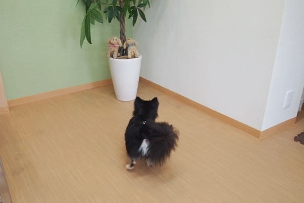 どうやら、観葉植物の上に乗っている犬の置物が気になっていたみたいです。