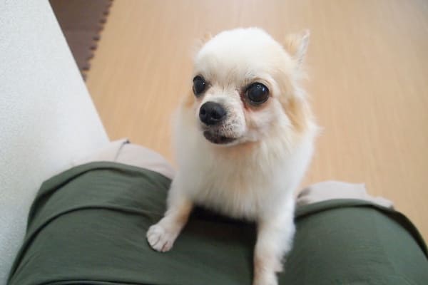 よじ登ってきた後は、私の脚の中にすっぽりと収まって、本当に可愛いんですよ。