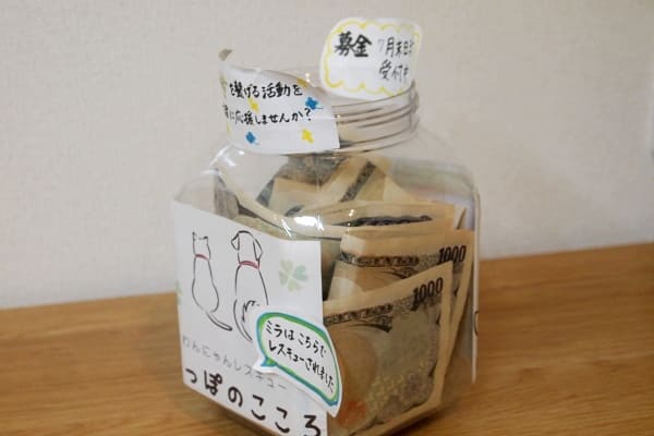 動物保護団体「しっぽのこころ」さんの募金箱を設置していましたが、