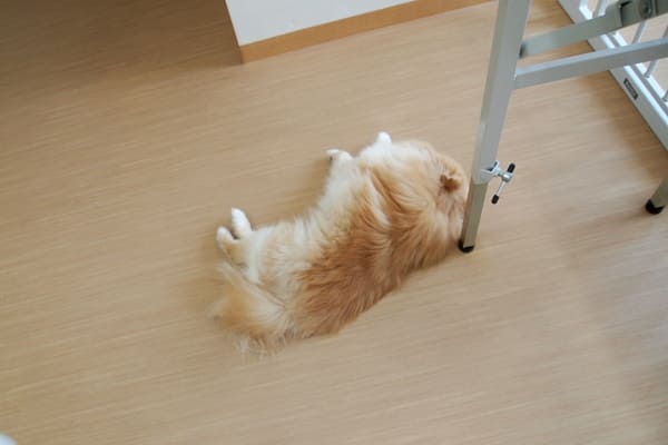 まるちゃんのシャンプーの段階で、すでにモコちゃんはこの姿勢。