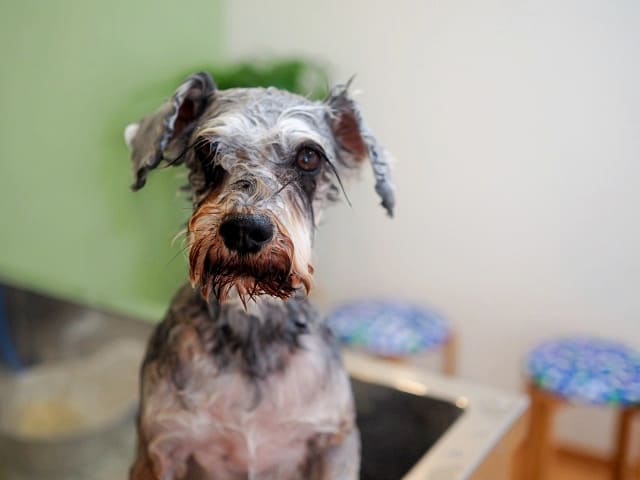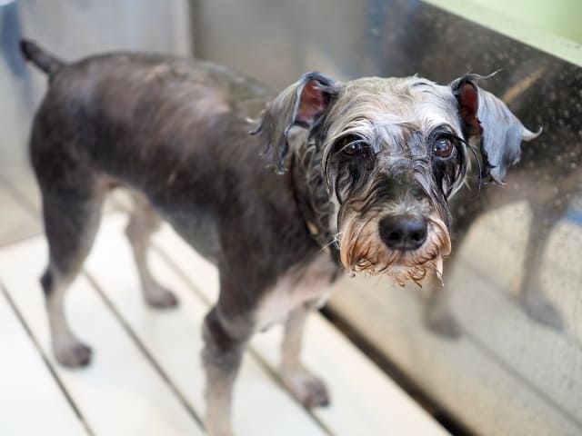 アロハちゃんはそわそわと落ち着かないので、福ちゃんからシャンプーしました。