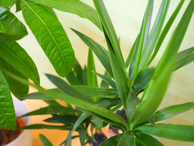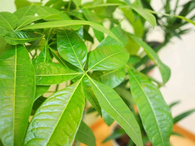 手前がパキラ、奥がユッカ。