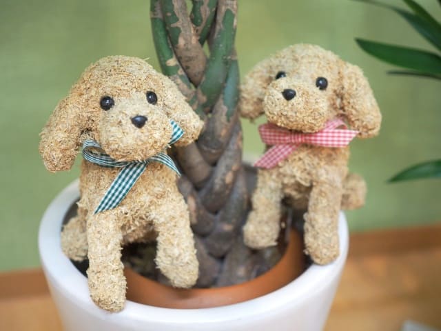 オープンの際に友人にもらった寄せ植えに乗っていた子たちで、あまりに可愛いのでずっとパキラの横に乗せていたんですよ。