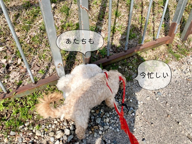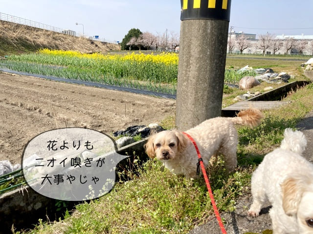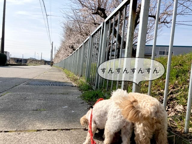 でも、桜が咲こうが景色がきれいであろうが、散歩中のコニミラには関係ないようです。
