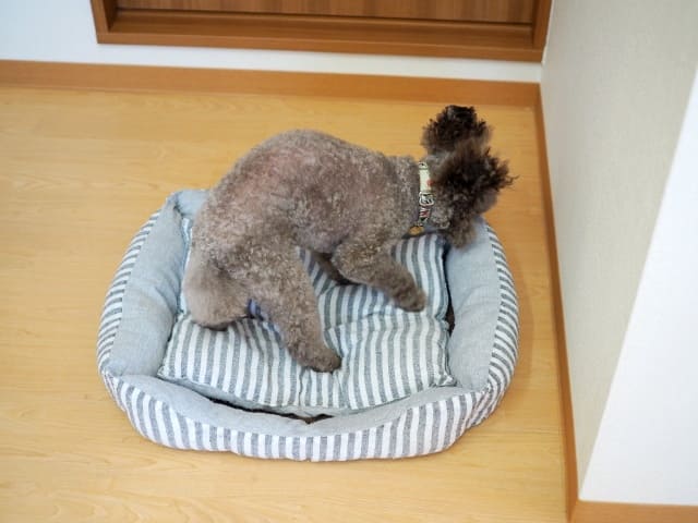 布団を掘って掘って、ぐるぐる回って回ってどすんと座る。