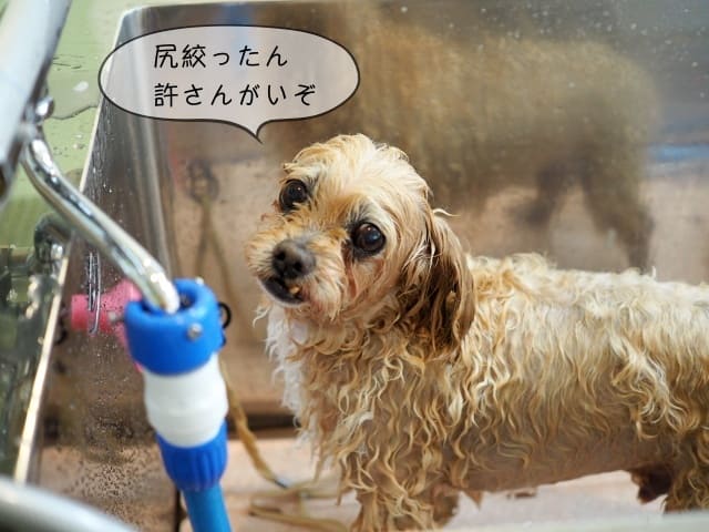 コニーはお尻を絞ったのが気に入らなかったらしく、初めてシャンプーの時に荒ぶりました。