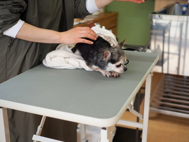 「ヤマトちゃんはパテラ(膝蓋骨脱臼)もあって、トリミングに介助が必要かもしれない。