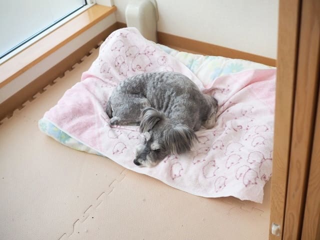 テーブルに乗せっぱなしだと危ないので、多少濡れていても床の上に下ろしています。