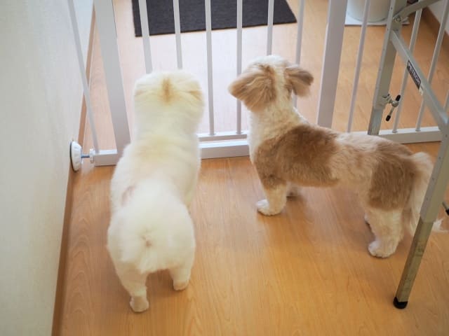 マルシーズーのモコちゃん&ポメペキのフウちゃん