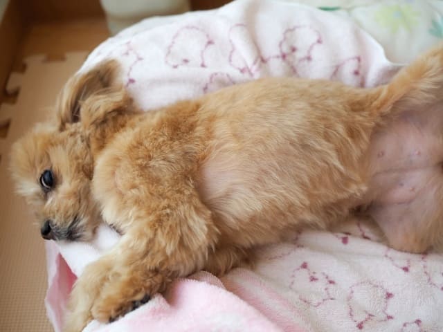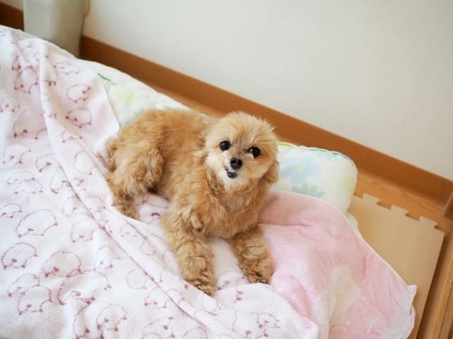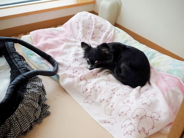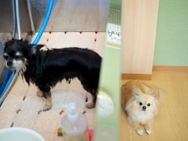 シャンプー前は寝ていたティアラちゃんですが、シャンプーが終わるとお迎えが来ると分かっているからか、ずっとそわそわ。
