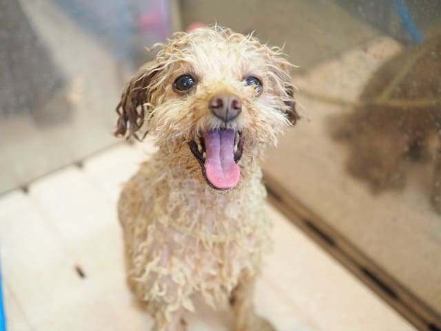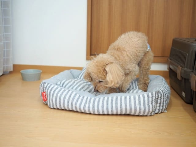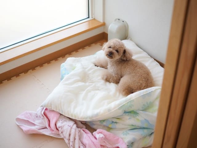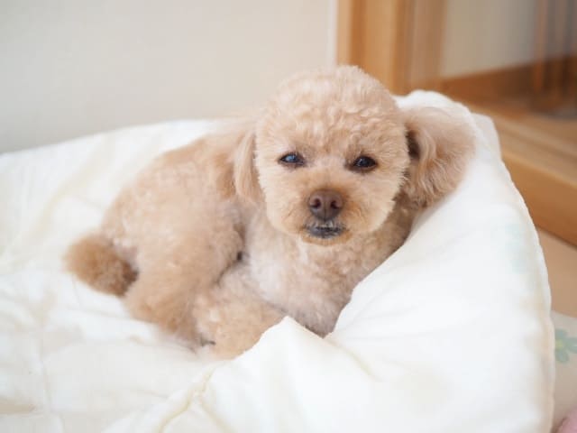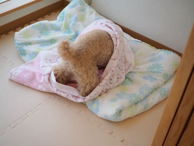 のんちゃんは、トリミングに加えて動き回ったから疲れたみたい。