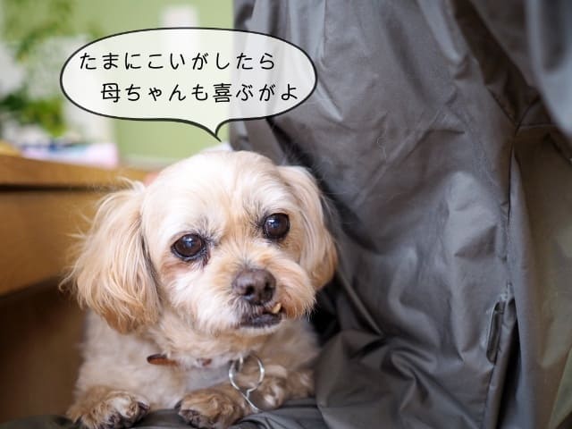 トリミングが終わってパソコン作業をしていると、急に「抱っこ」と言ってきました。