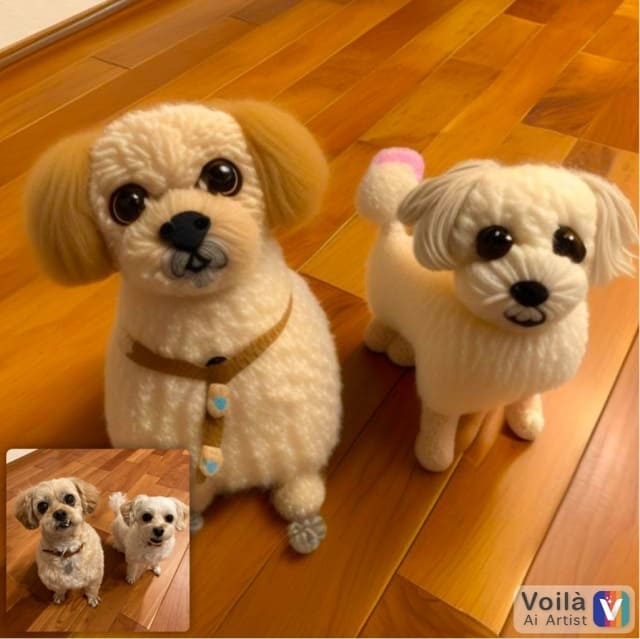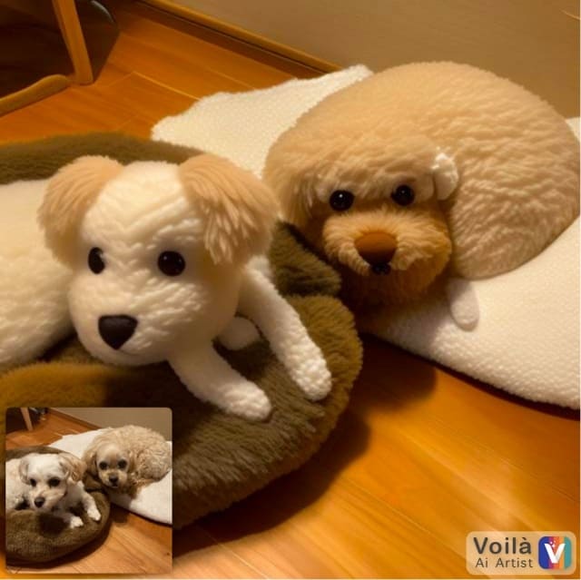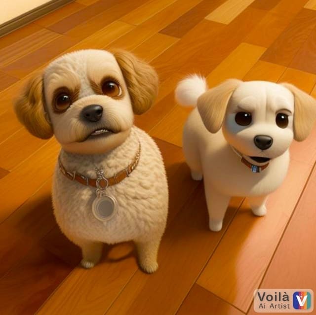 前回に続き、「Voila Ai Artist カートゥーンアバター」というアプリで愛犬たちの写真を変換してみました。