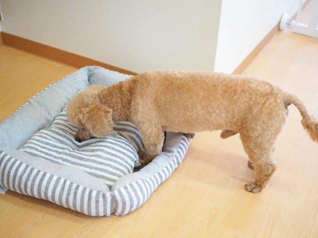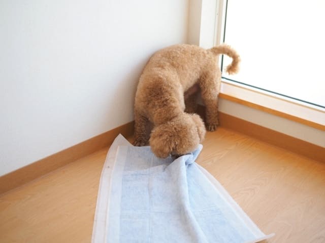興味津々にベッドやトイレシートのニオイをひたすら嗅ぎ続けていましたよ。
