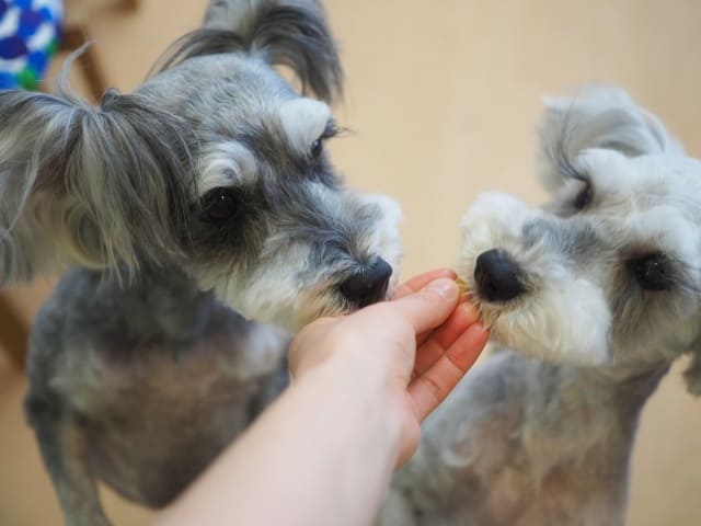 わんちゃんは、食べた量じゃなくて食べた回数によって満足度が上がると思っているので(持論)、小さいおやつをさらに小さくして何回もあげました。