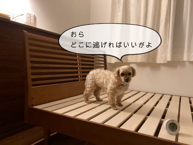 布団の上がいいかな、と思って布団の上に降ろしたら、布団の上でおしっこをしてしまいました。