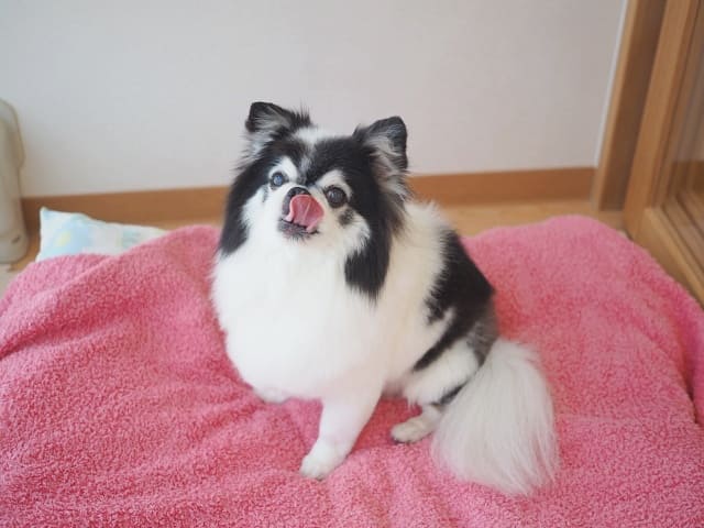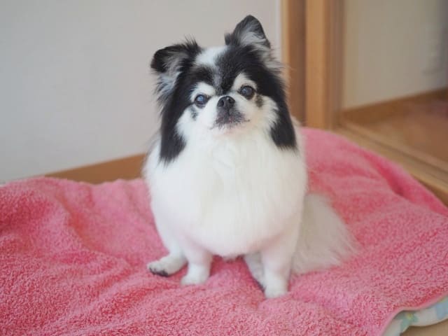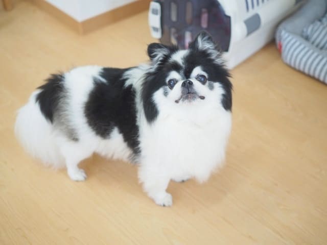 ハッピーちゃんは、同居犬のポメラニアンたちと同じくらいの大きさで、毛の生え方も似たように見えますが、