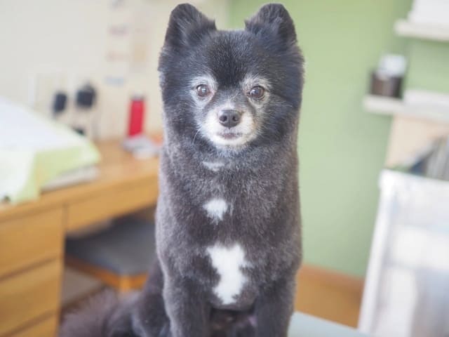 野球部のような丸坊主希望ですが、やっぱりポメラニアン系は毛が生えなくなるリスクがあるので、ある程度残させてもらいました。