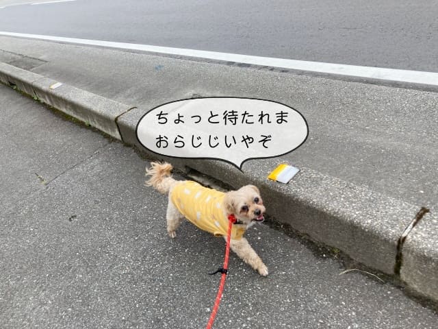 お散歩中、ある場所に行ったら、必ず建物のある側に行こうとするんです。