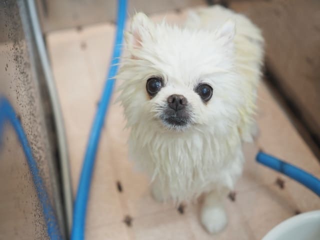 まるちゃんは、ハウスの中が好きなので、先にソラちゃんからシャンプーです。