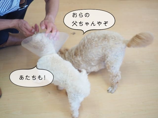 まだ口元を気にしているため、ごはん以外の時はエリザベスカラーを付けています。