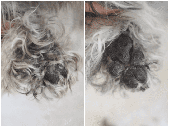 ただ、トリミング間隔が空いてしまったようで、爪や足裏の毛も相当伸びていました。