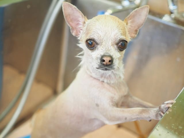 シンクの中で切らないといけない子や、飼い主さんにお手伝いいただいている子は、シャンプー前になってしまいますが。