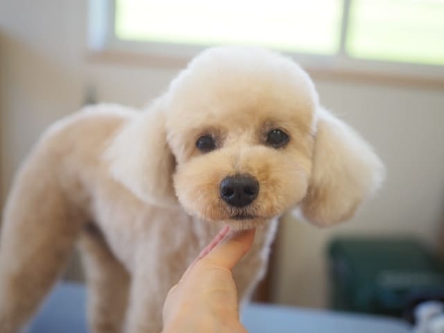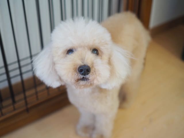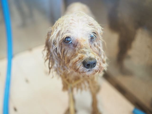 普通、トイプードルの子はシャンプーの前は毛がちりちり。