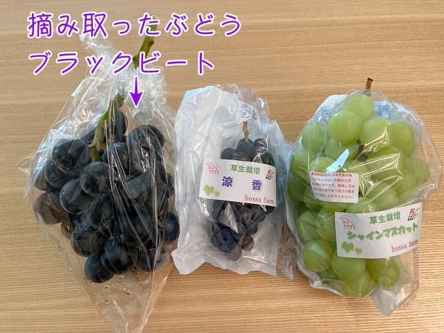 摘み取ったブラックビートに加えて、店頭で販売されていたシャインマスカットと涼香というぶどうも購入。