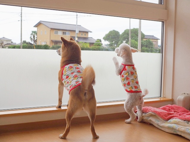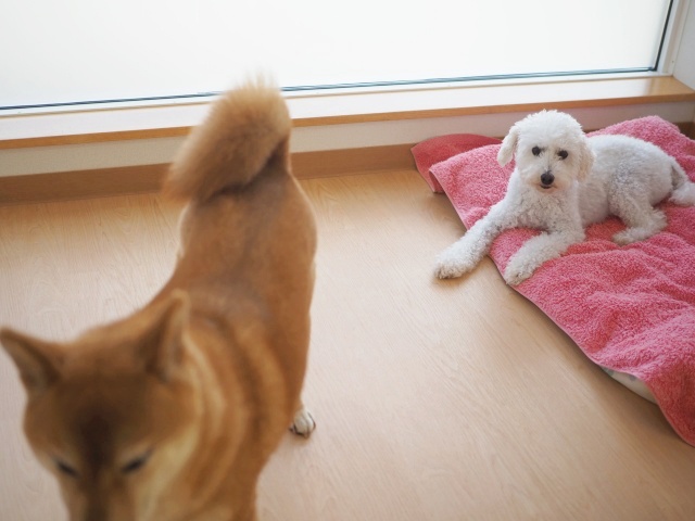 トイプードルのマハロちゃん&柴犬のはちちゃん