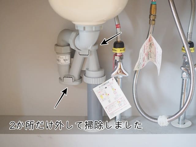 パイプを外せないのは仕方がないし、詰まりを取り除くこともできないので、これで終了です。
