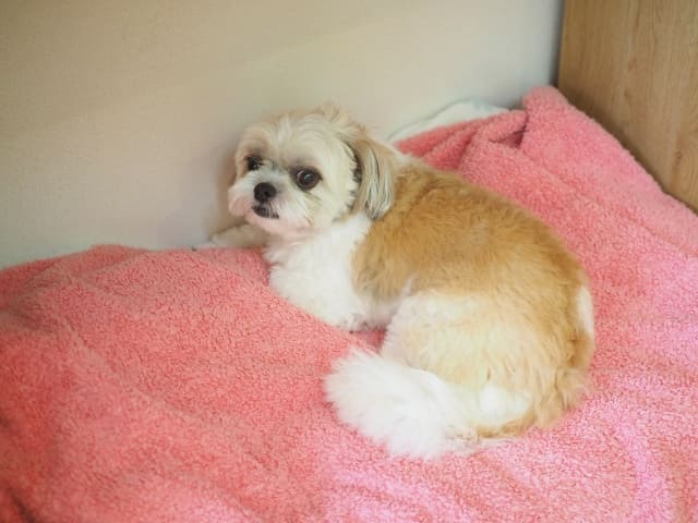 以前受けたセミナーで、目元が脂っぽい子は、わんちゃん用のクレンジングオイルを使うと早くきれいになるよと教わったので、早速あられちゃんにもやってみました。