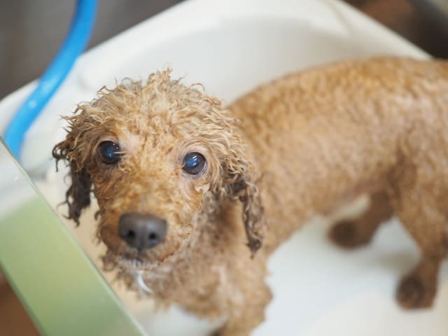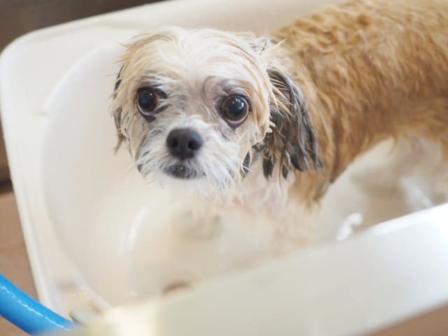 あられちゃんも、初めてドッグバスで洗いましたよ。