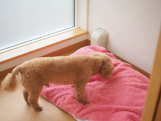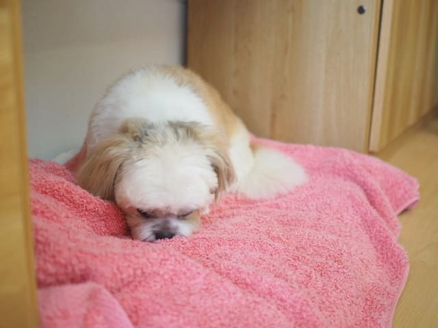 あられちゃんが使ったタオルも気になってニオイを嗅いでいましたよ。
