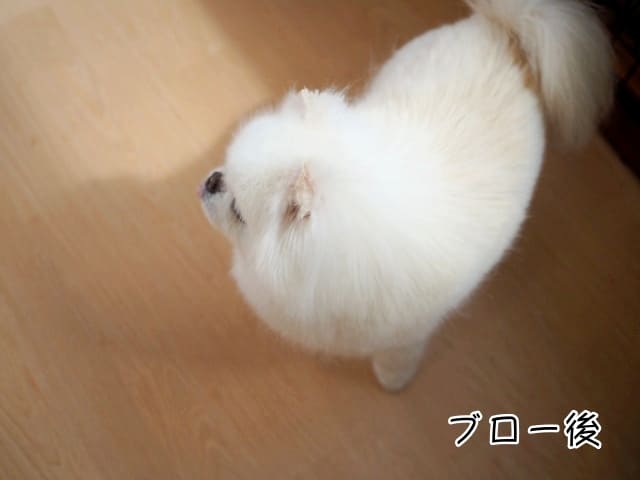 たまたま同じアングルの写真があったので、シャンプー前とブロー後の写真を並べてみました。