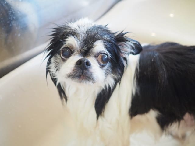 さぁ、ソラちゃんからシャンプーですよ。