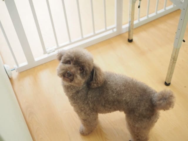 トリミングが終わってからは、私の車をお迎えの車だと勘違いして、ずっと入り口に待機していました。