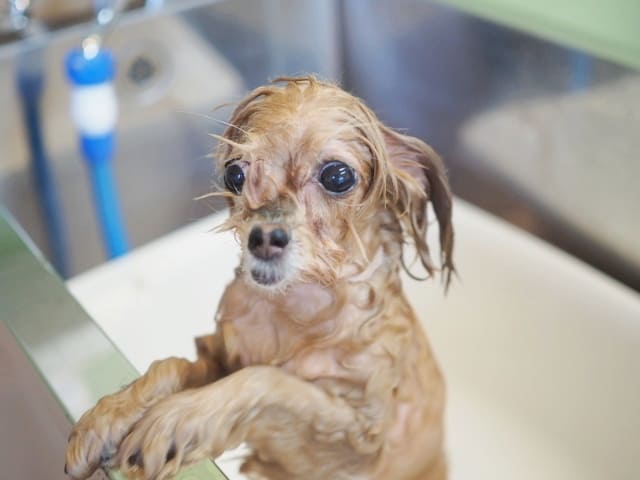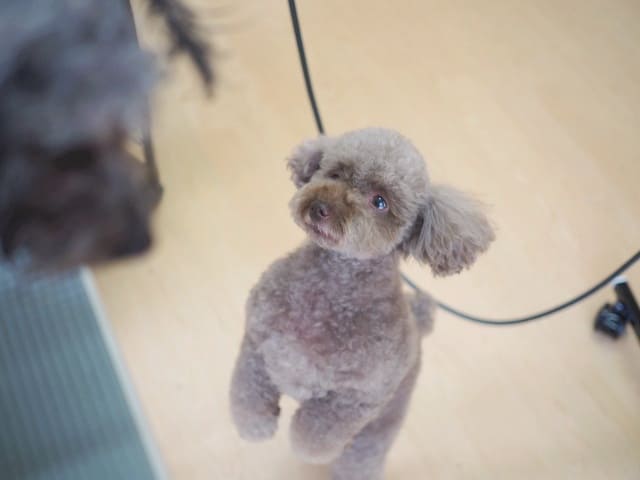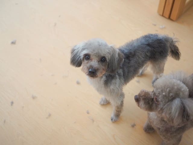 先住犬がトリミングをしている姿を見せることで、戸惑いを少しでも和らげられたらと思っています。