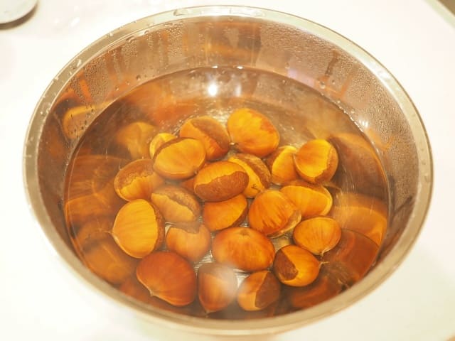 これで鬼皮(外の硬い皮)だけでなく、渋皮(中の薄い皮)もするんと剥けるらしいです。